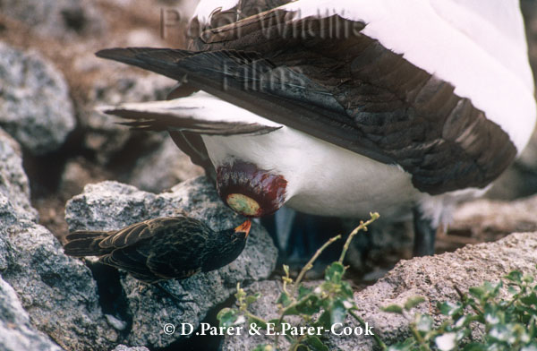Sharp-beaked ground finch taking egg-laying lubricant from Masked booby ← Previous Next → Sharp-beaked ground finch taking egg-laying lubricant from Masked booby, Wolf (Wenman) Island, Galapagos Islands, Ecuador Sharp-beaked ground finch taking egg-laying lubricant from Masked booby, Wolf (Wenman) Island, Galapagos Islands, Ecuador