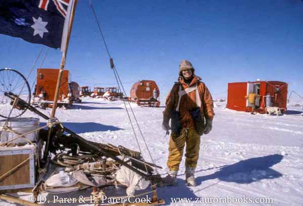 From the Archives: 1981_9. Liz Parer-Cook on the polar plateau inland from Mawson Base, summer 1982. “We set up a base camp near Mount Henderson with 2 dog teams to re-enact Douglas Mawson’s famed yet tragic sledging journey of 1912-13 – an amazing experience.”