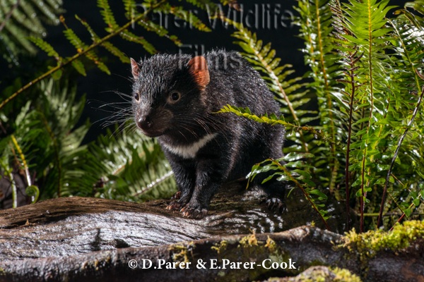 Tasmanian devil ← Previous Next → Tasmanian devil, 9 month old juvenile in moss forest at night, after rain, Cradle Mountain, Tasmania, Australia Tasmanian devil, 9 month old juvenile in moss forest at night, after rain, Cradle Mountain, Tasmania, Australia