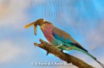 - Lilac-breasted Roller eating insect, Lake Nakuru, Kenya, Africa