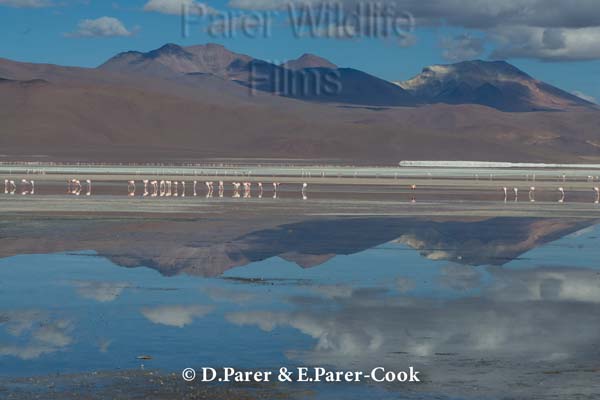 Flamingos congregate on Laguna Colorado to feed on red-coloured algae, Bolivia ← Previous Next → 3.Flamingos congregate on Laguna Colorado to feed on red-coloured algae, Bolivia